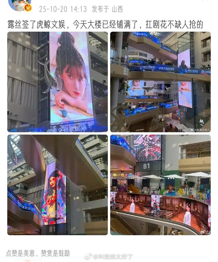 This may be a case of moving the right hand to the left hand but we shall see. C-ent this week started off with the rumor that C-actress Zhao Lu Si has resolved her conflict with existing agency Galaxy Kuyu Entertainment and has signed on with Orca Entertainment. Orca (or 虎鲸 Hu Jing) is the largest entertainment group under the Alibaba conglomerate umbrella, so it’s a big agency. Alibaba has invested in Galaxy Kuyu as well so in essence if this is true she’s just moving from a smaller agency that she’s not happy with to a larger agency but still under the same parent ownership. The rumor has spread due to the headquarters of Alibaba’s entertainment group including of agency Orca Entertainment was seen displaying huge LED promos of various Zhao Lu Si dramas over the weekend. As of now, no announcement or confirmation yet but if it’s true then best wishes on a fresh start for Zhao Lu Si.